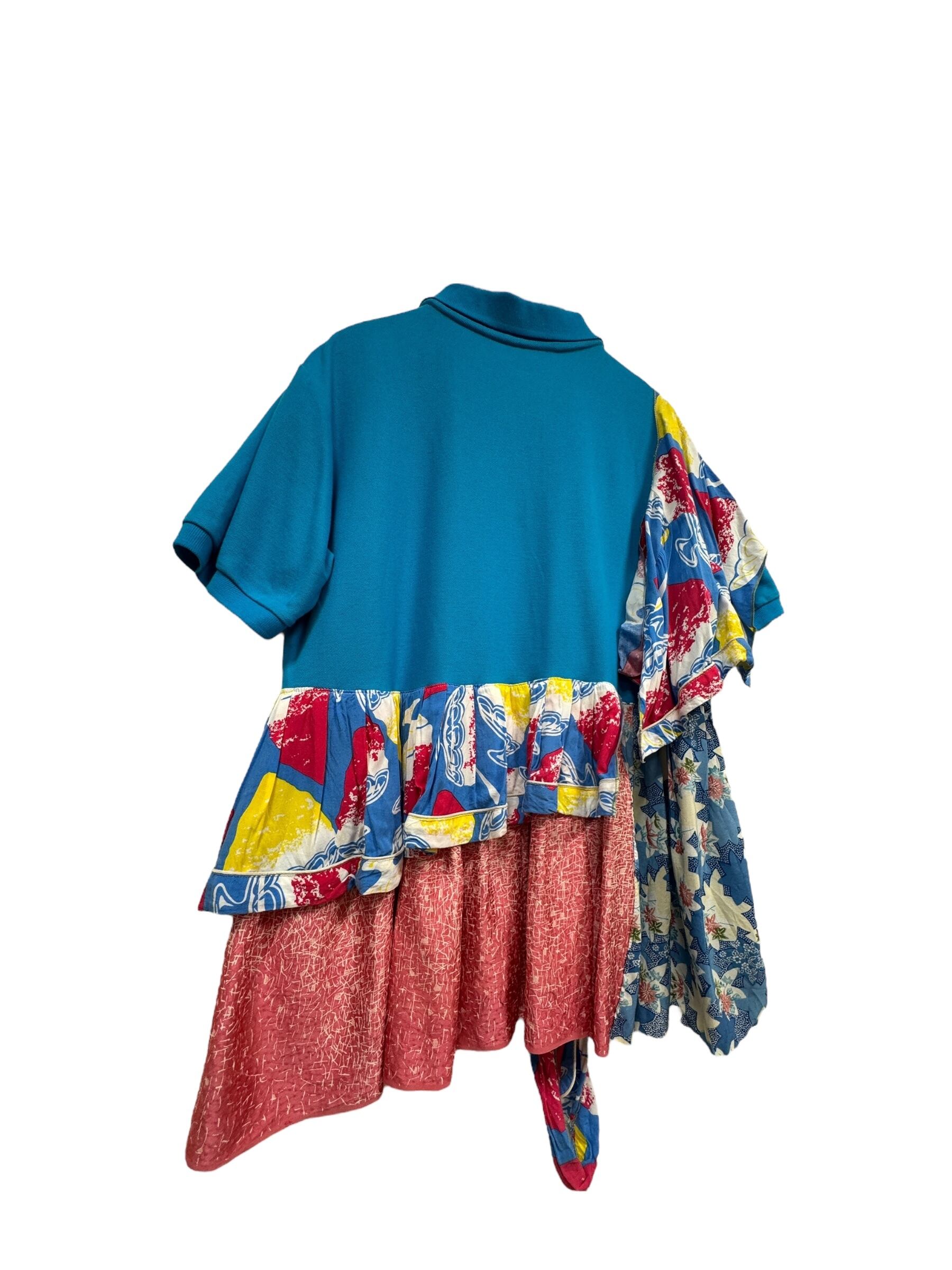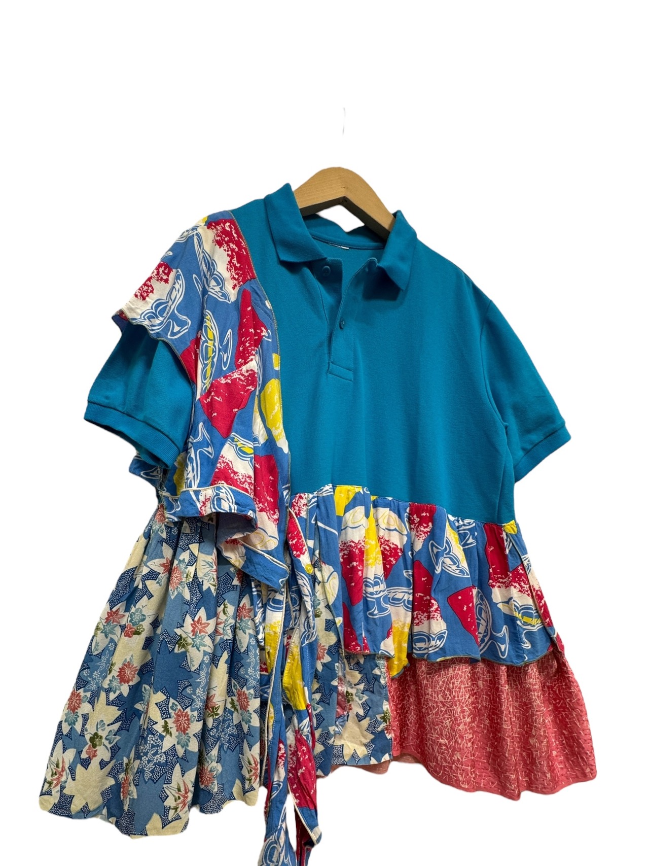ブルーポロシャツ& kimono mix