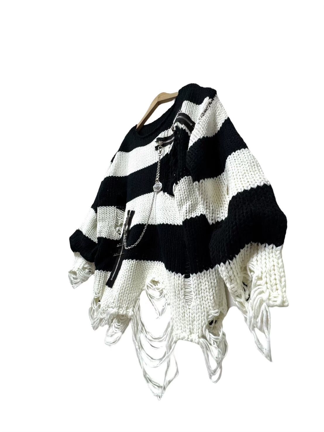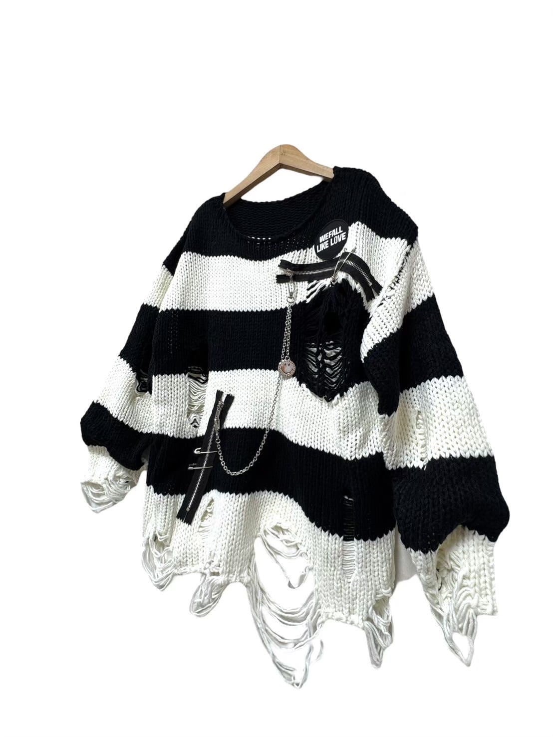 ダメージ ボーダーニットトップス