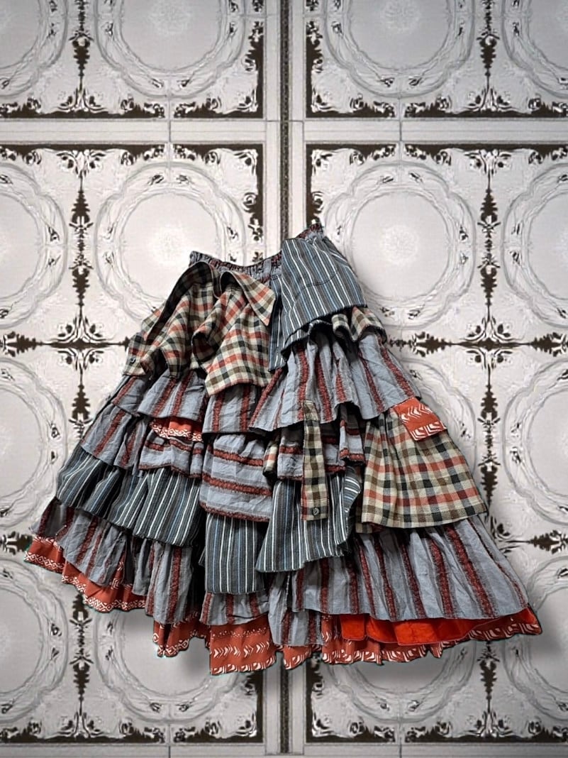 古着を使用してリメイクしております。中にはキズ等ダメージや生地の色ムラがある場合もございます。それらは全てデザインの一部となりますので不良品ではございません。(特に写真を掲載してはおりません)