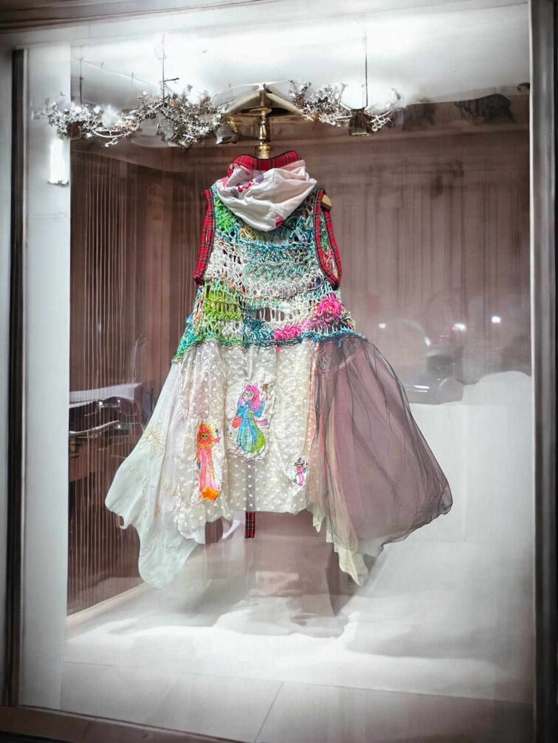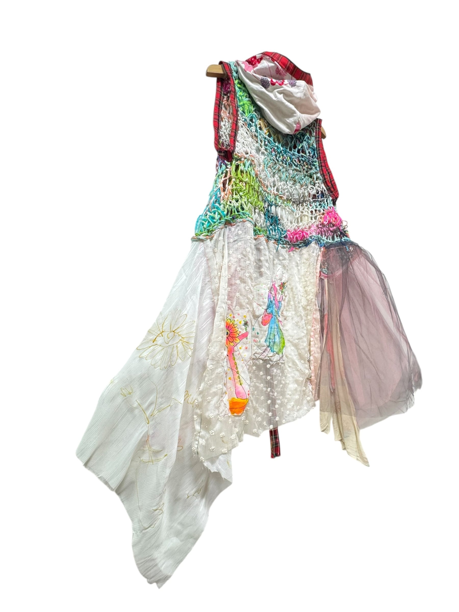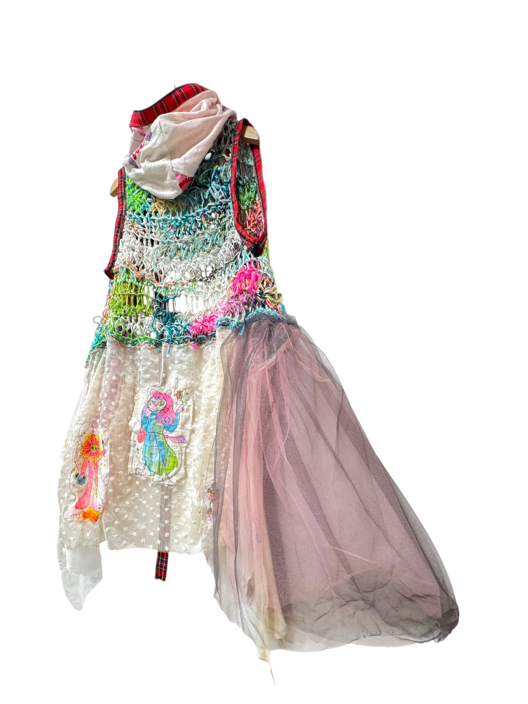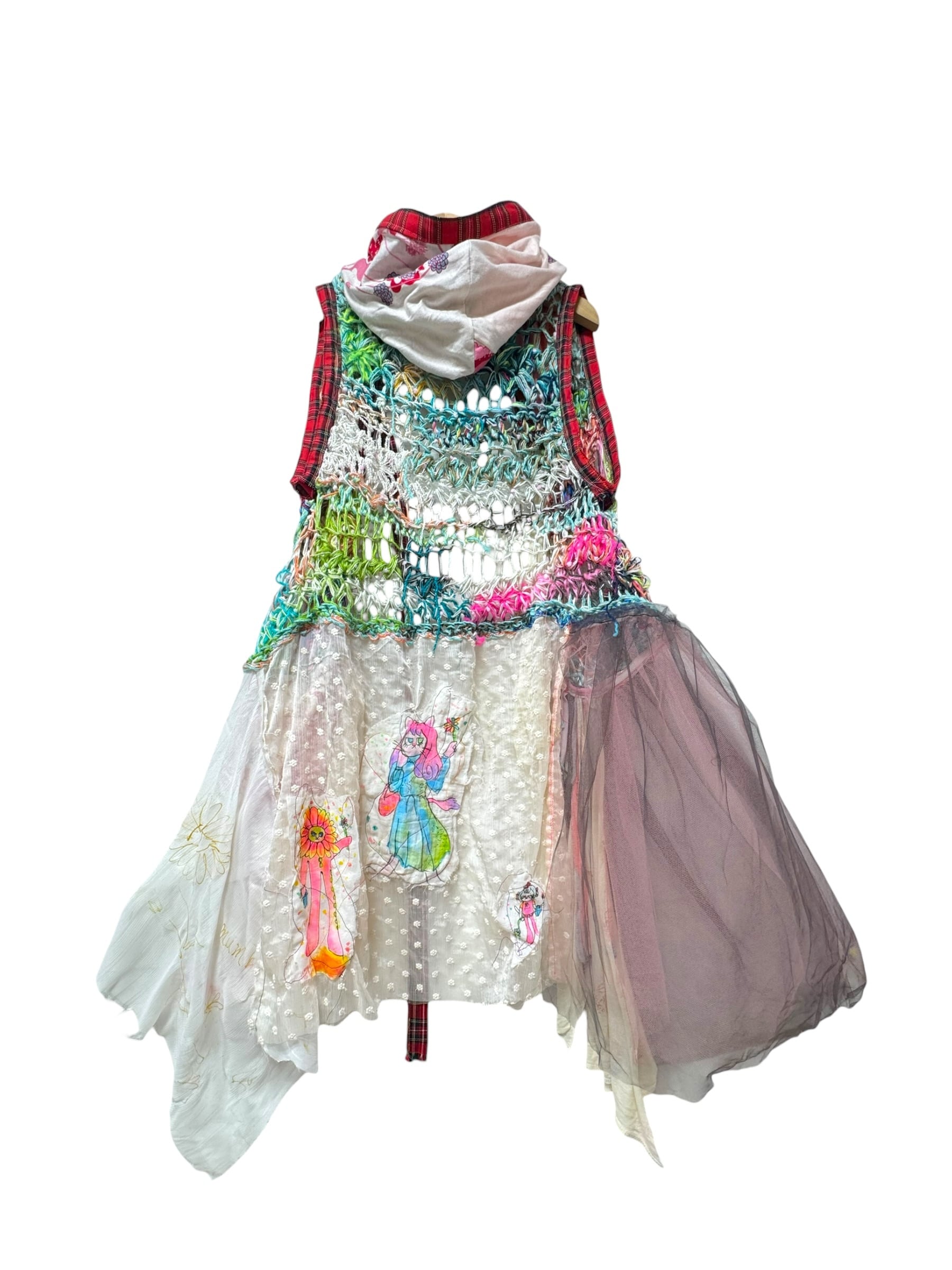 手書きのイラスト&ヴィンテージスカーフや異素材の装飾。