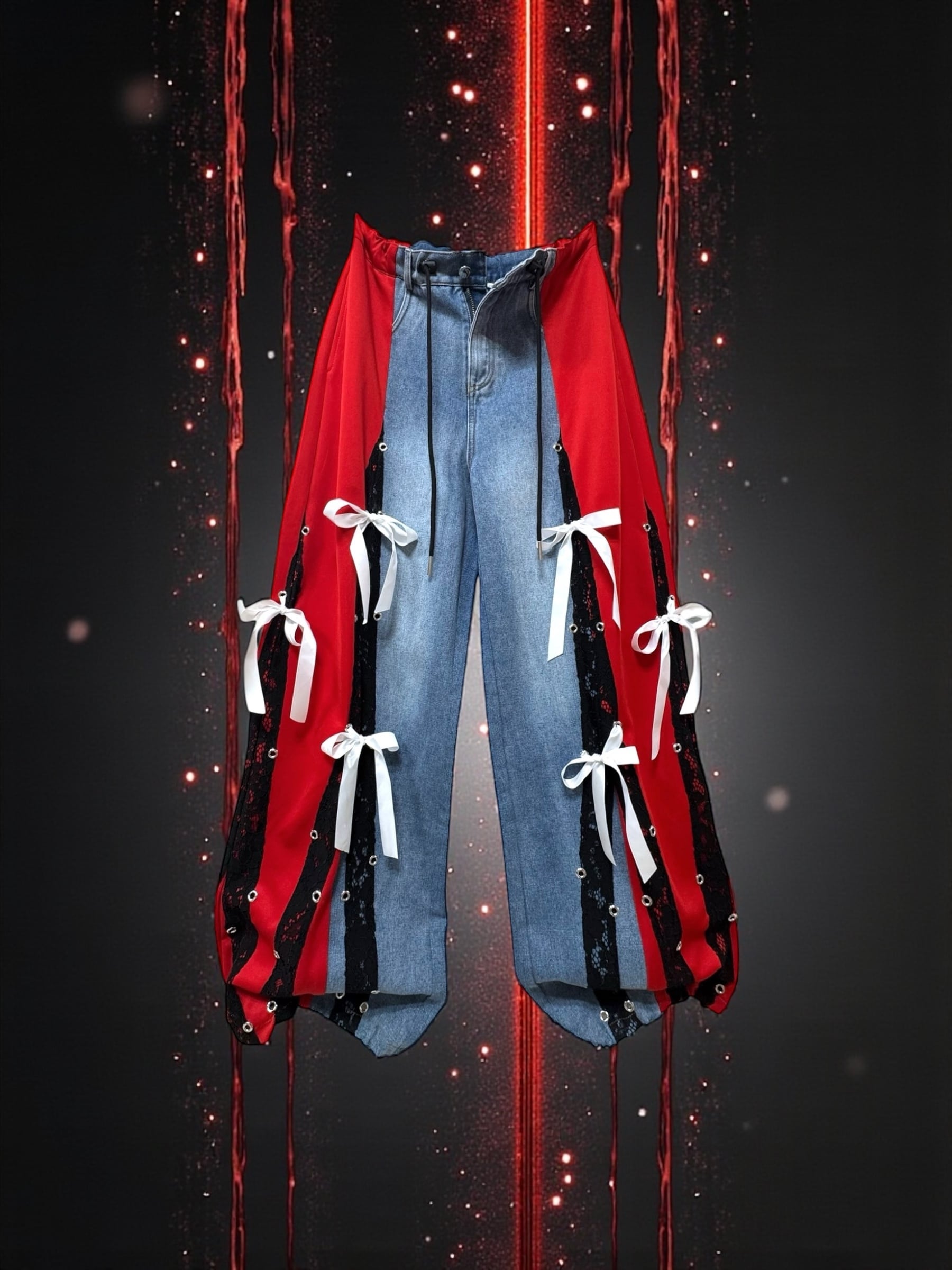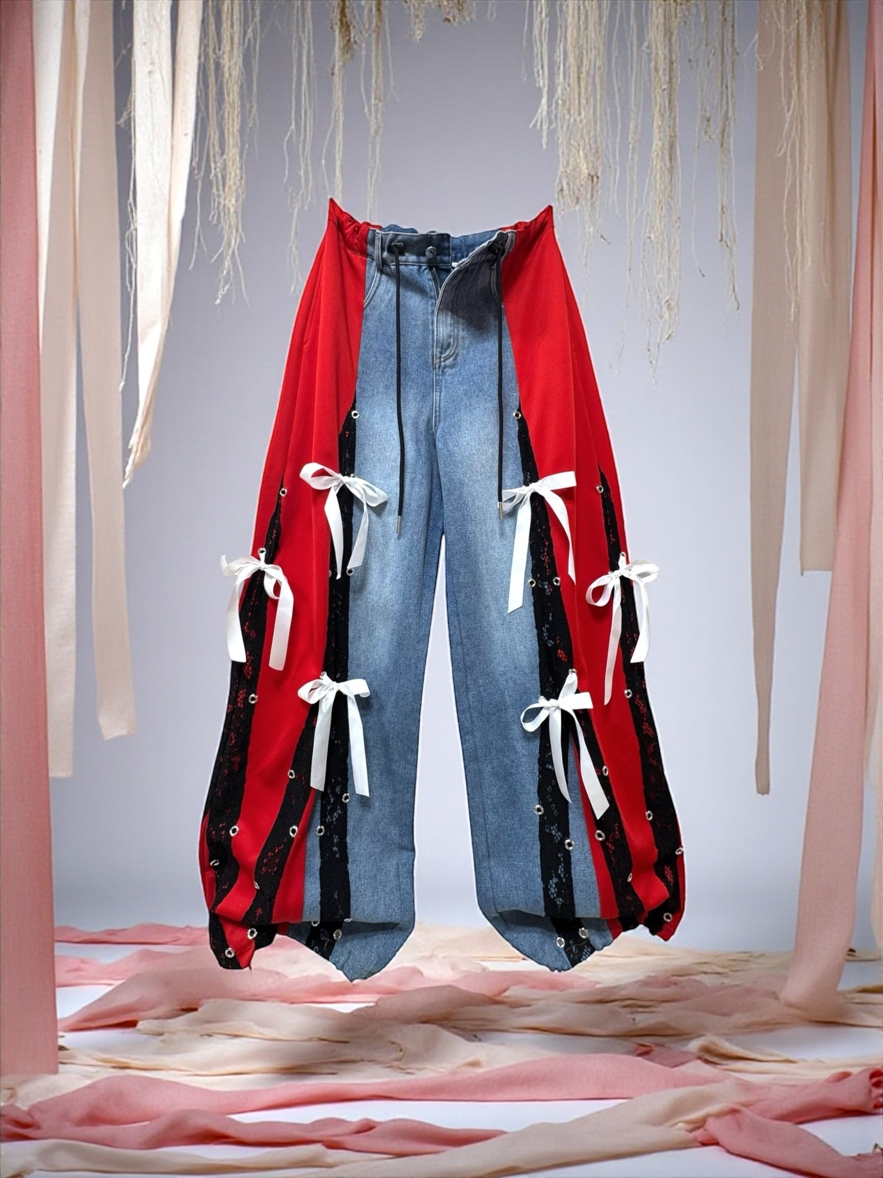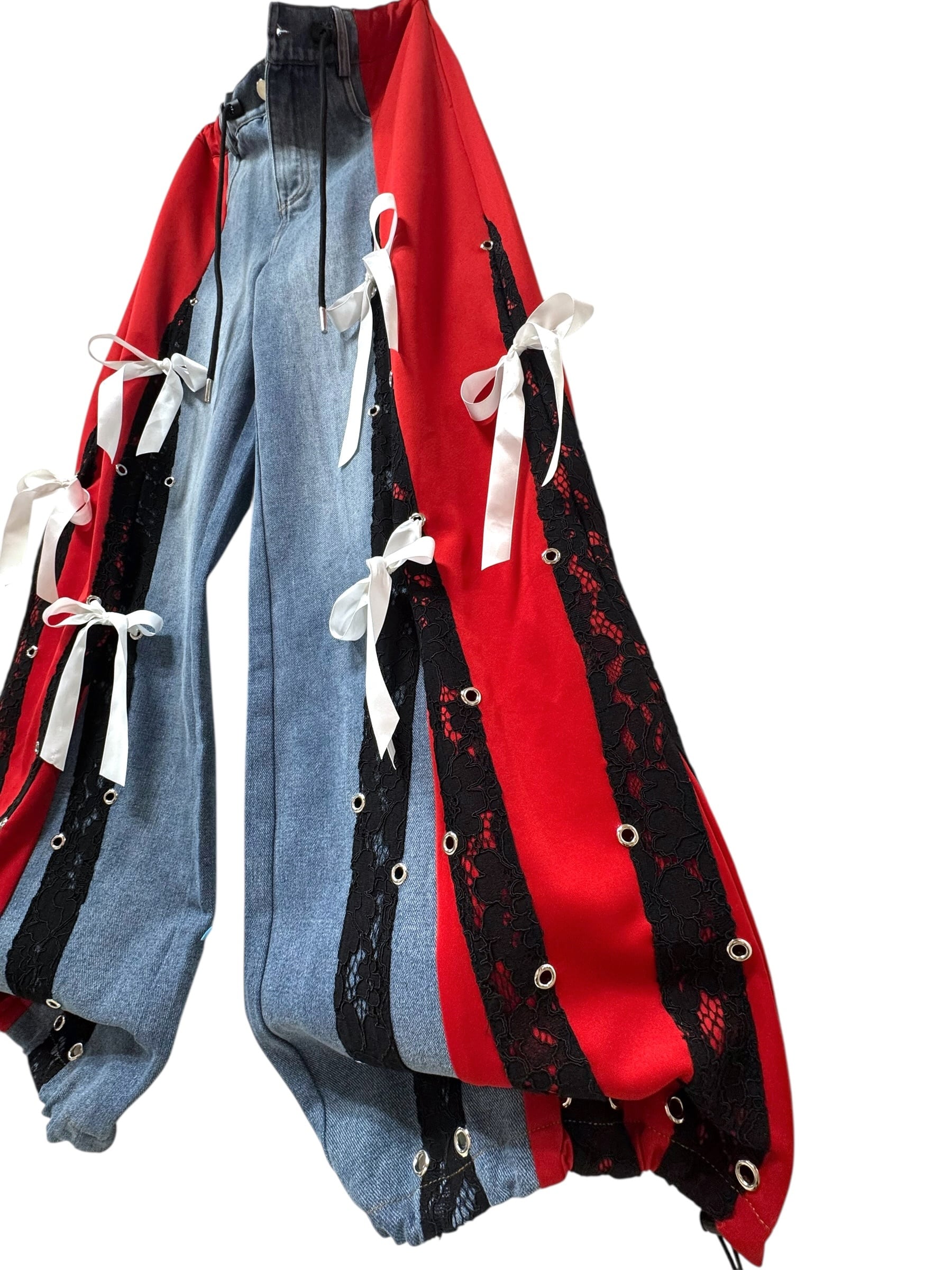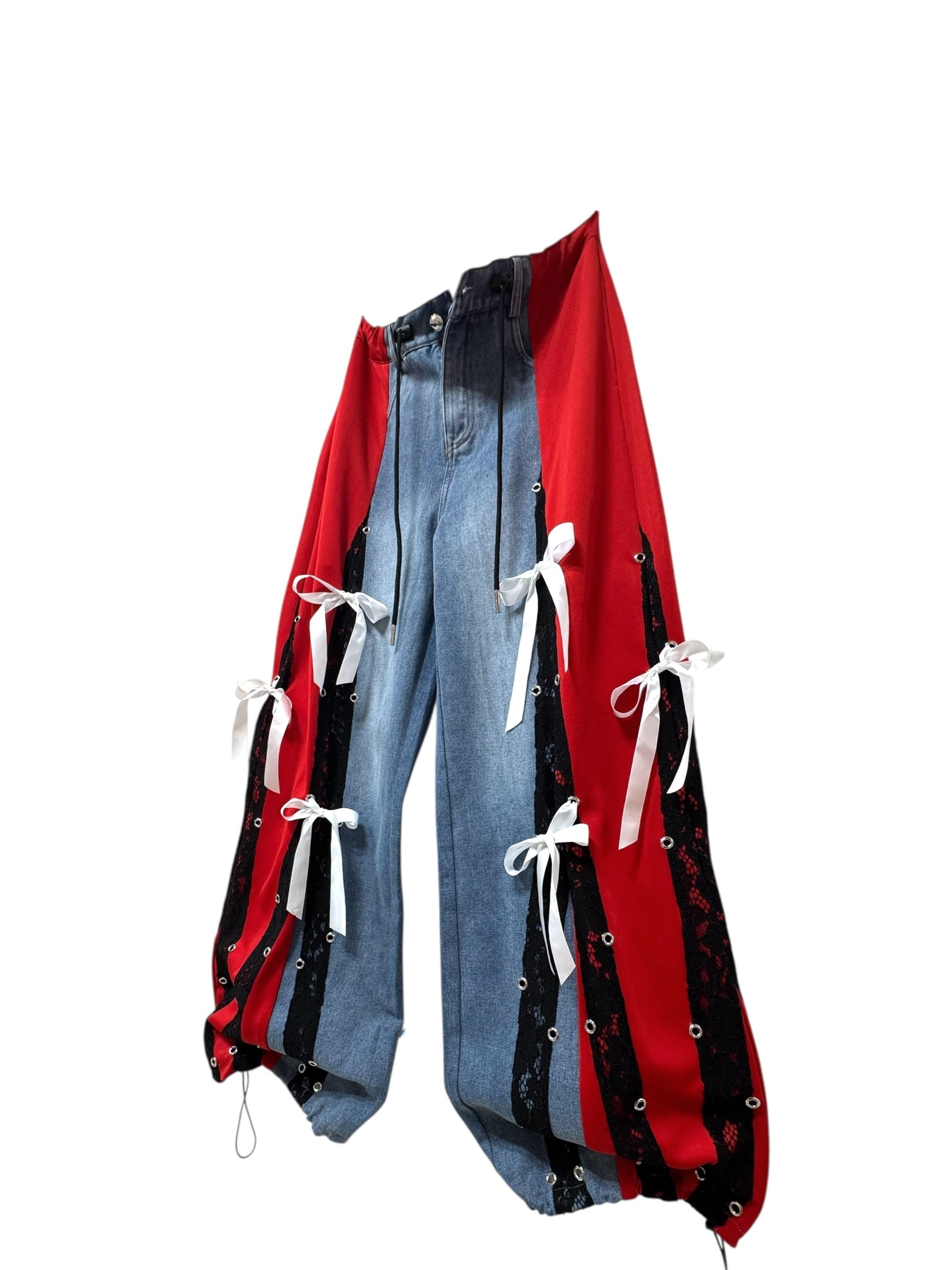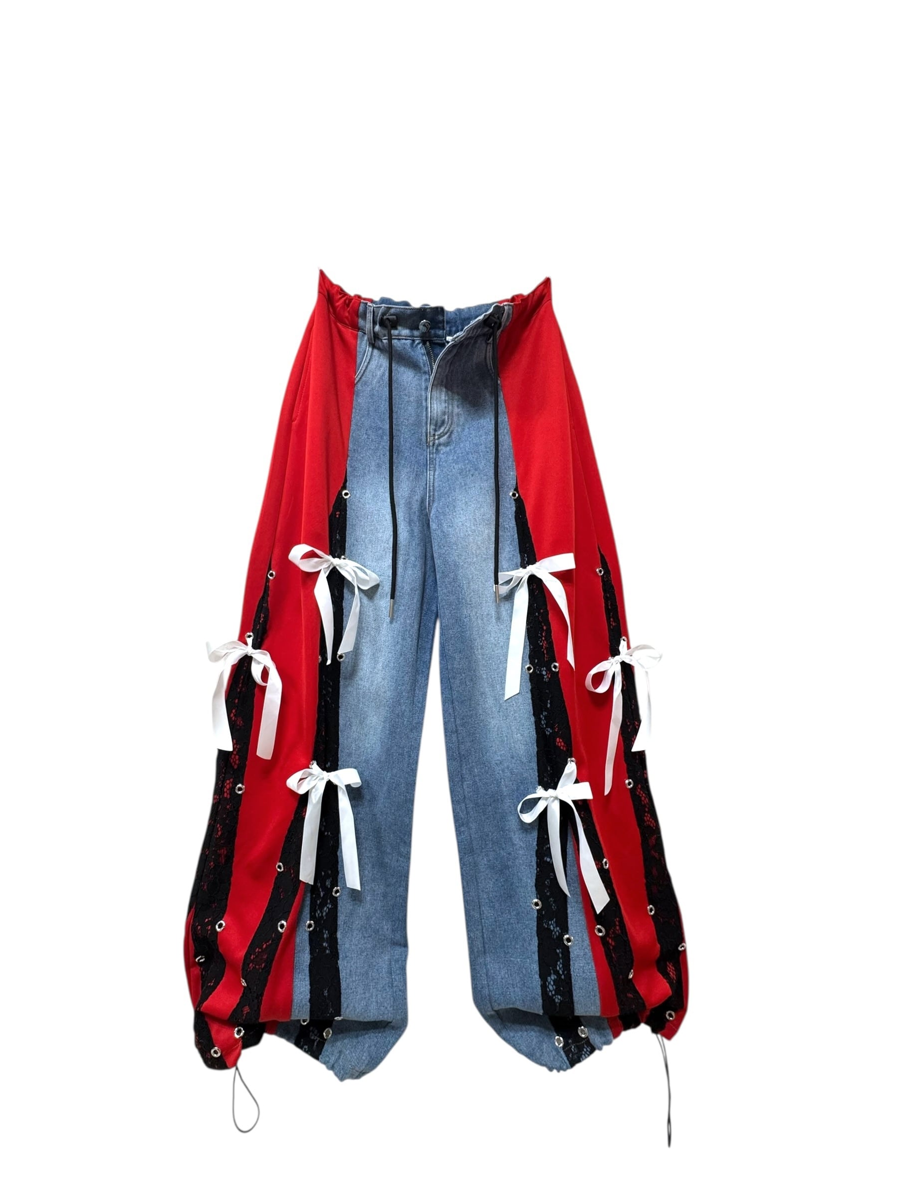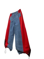 デニム切り替えワイドパンツ