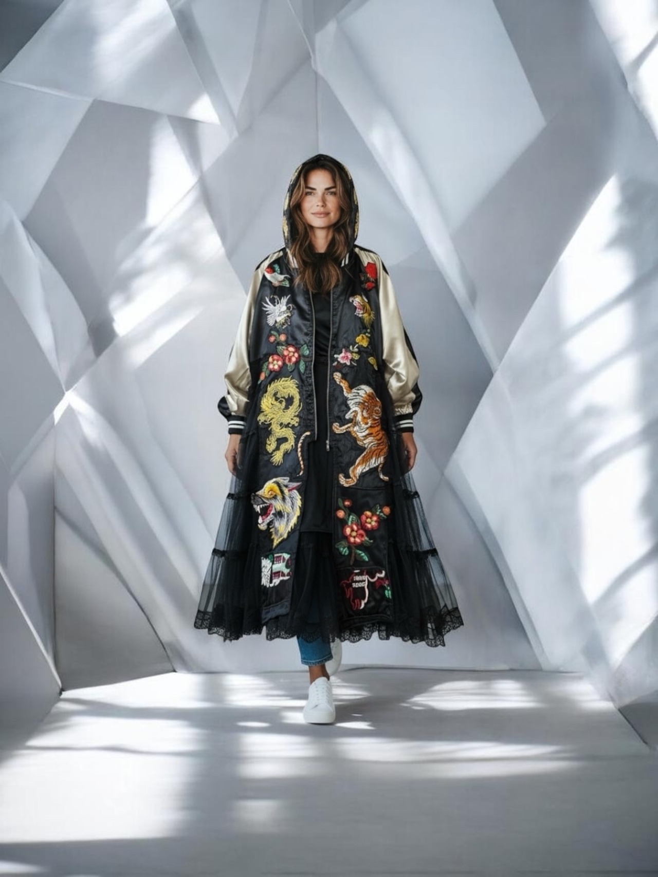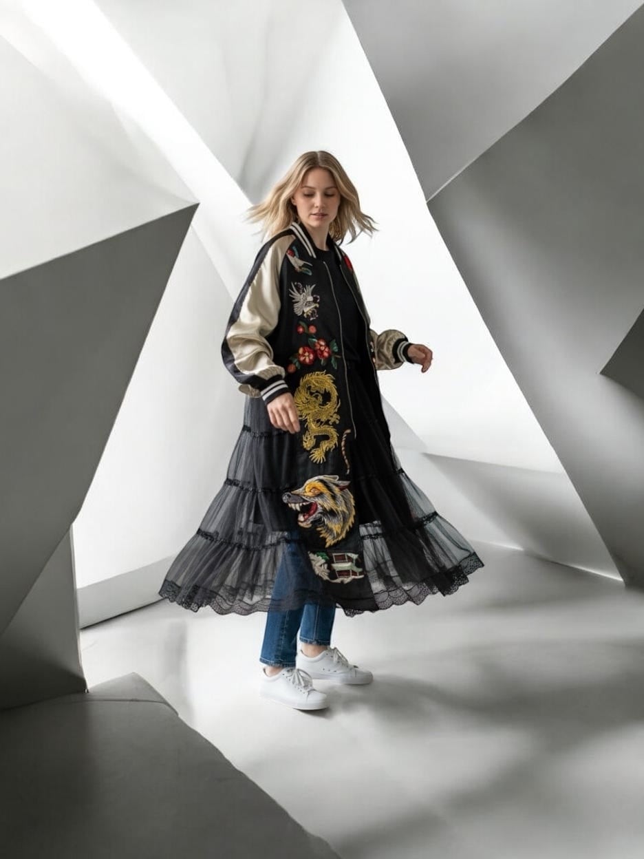 ドラゴンタイガー刺繍のブラックスカジャン