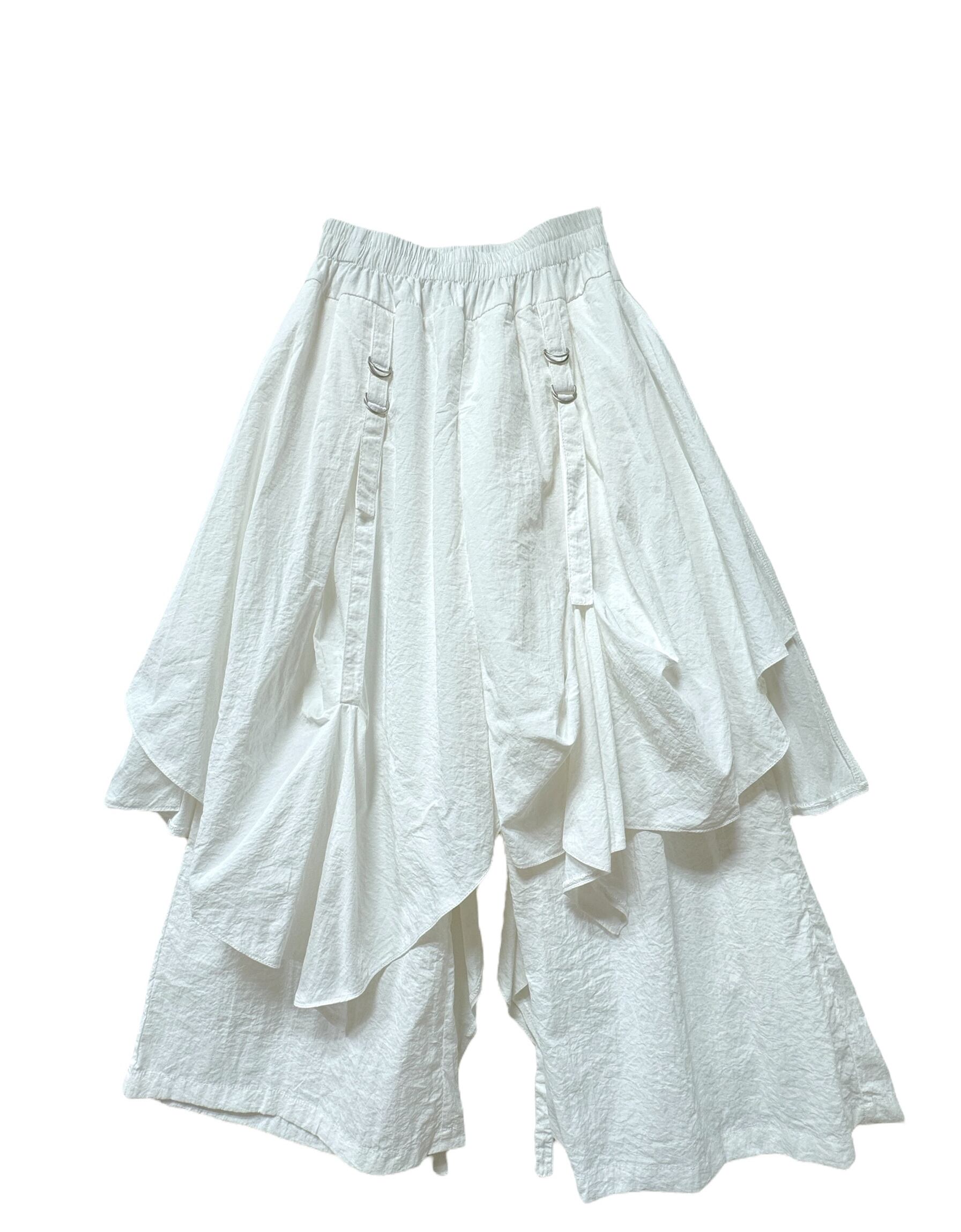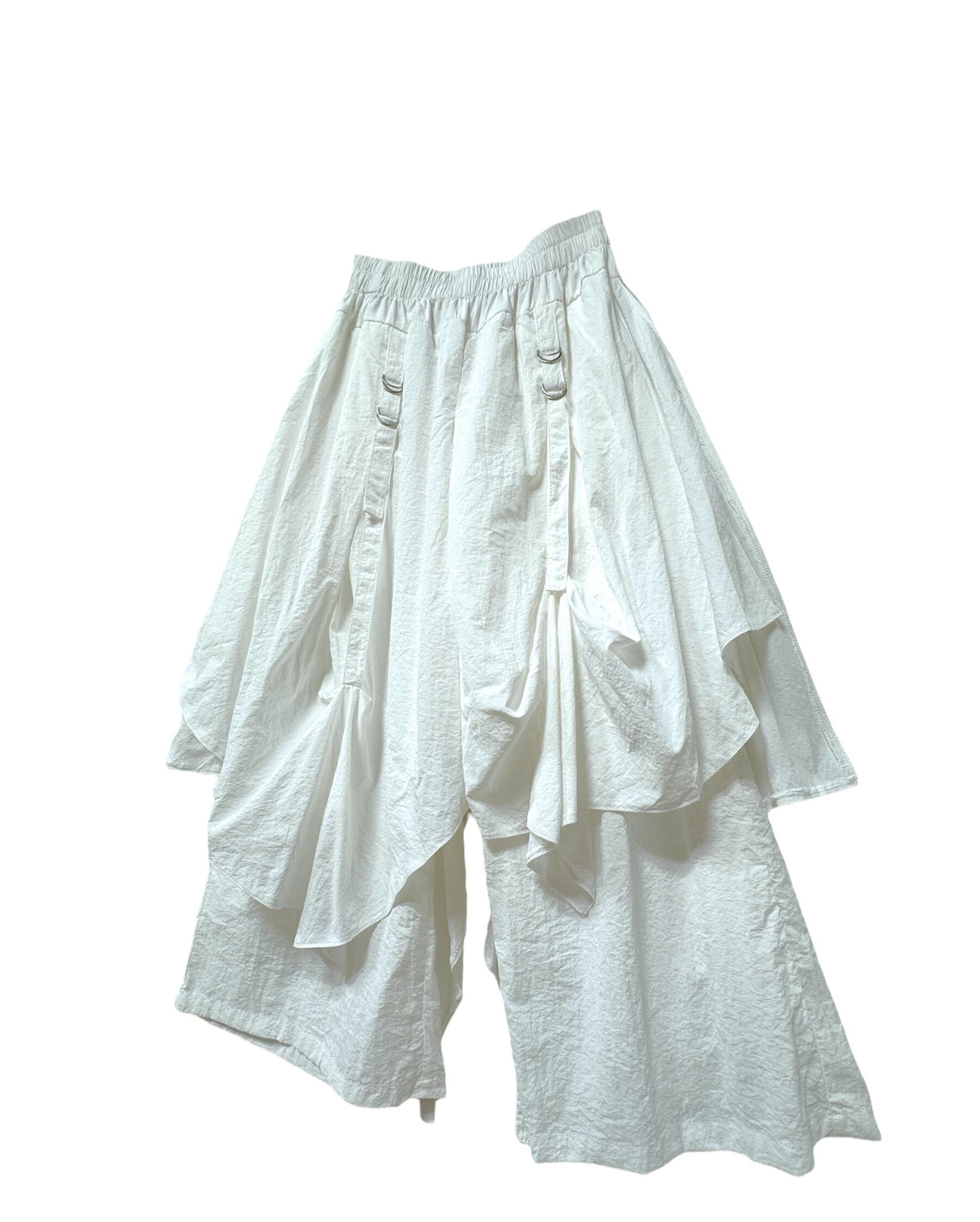 ハーフパンツの上に巻きスカートデザイン。
