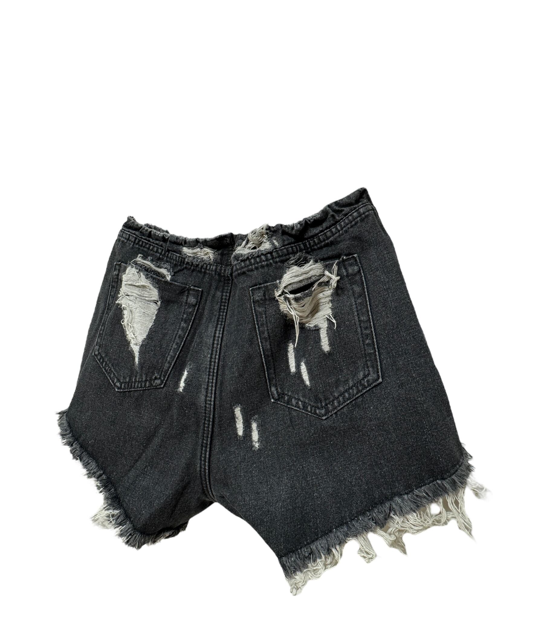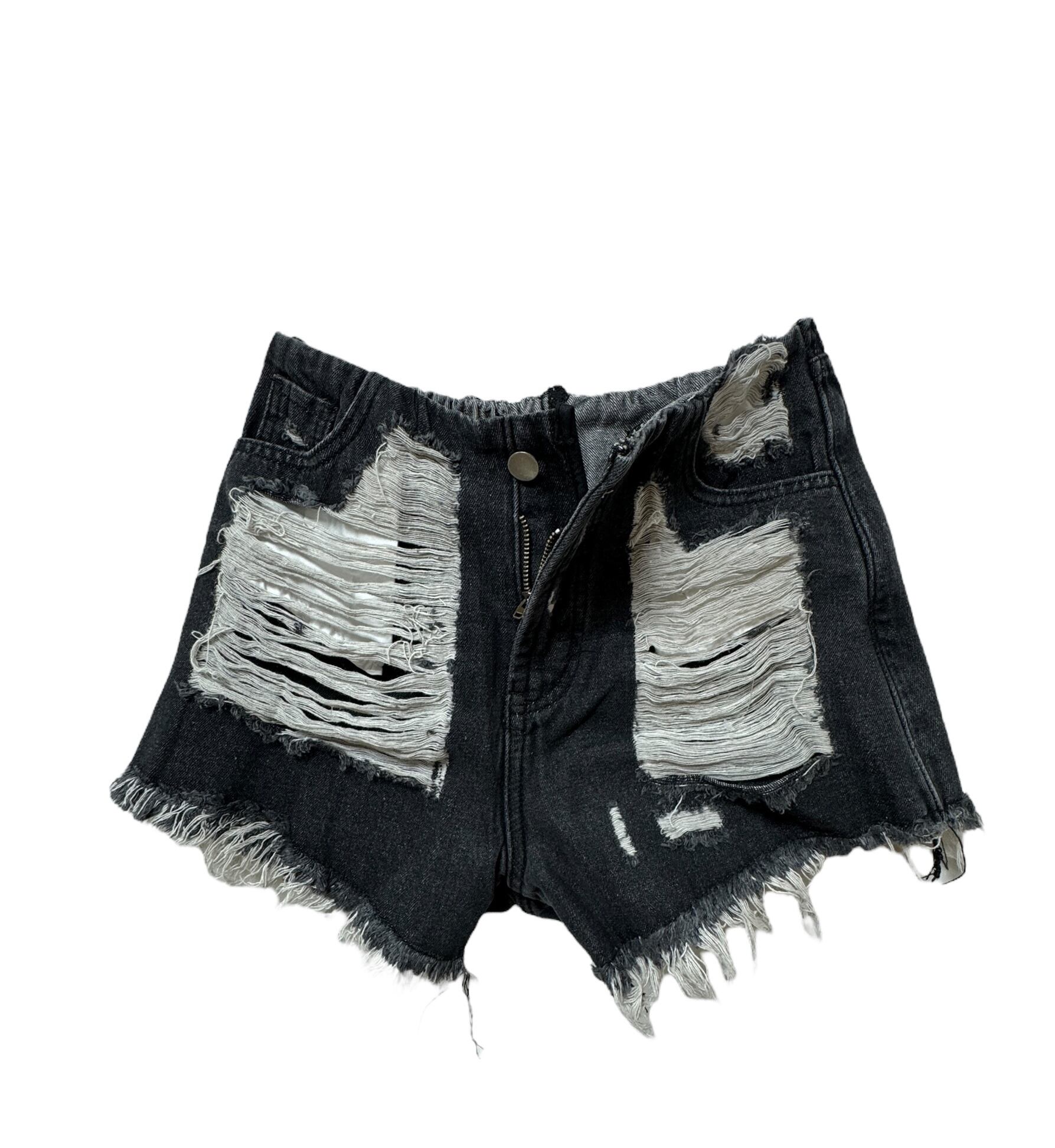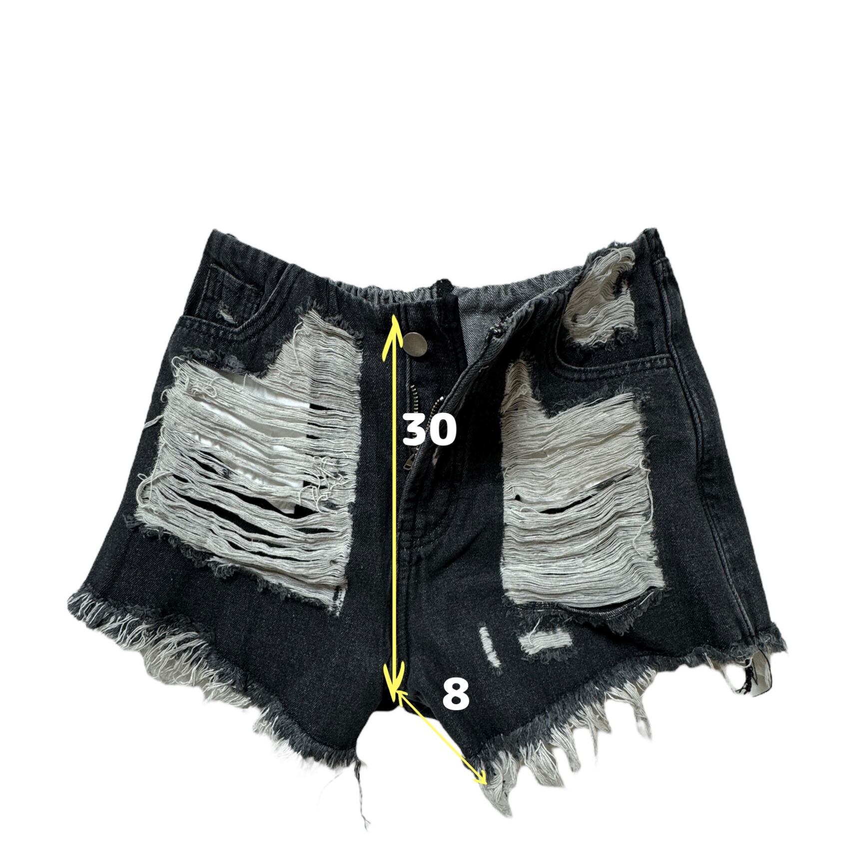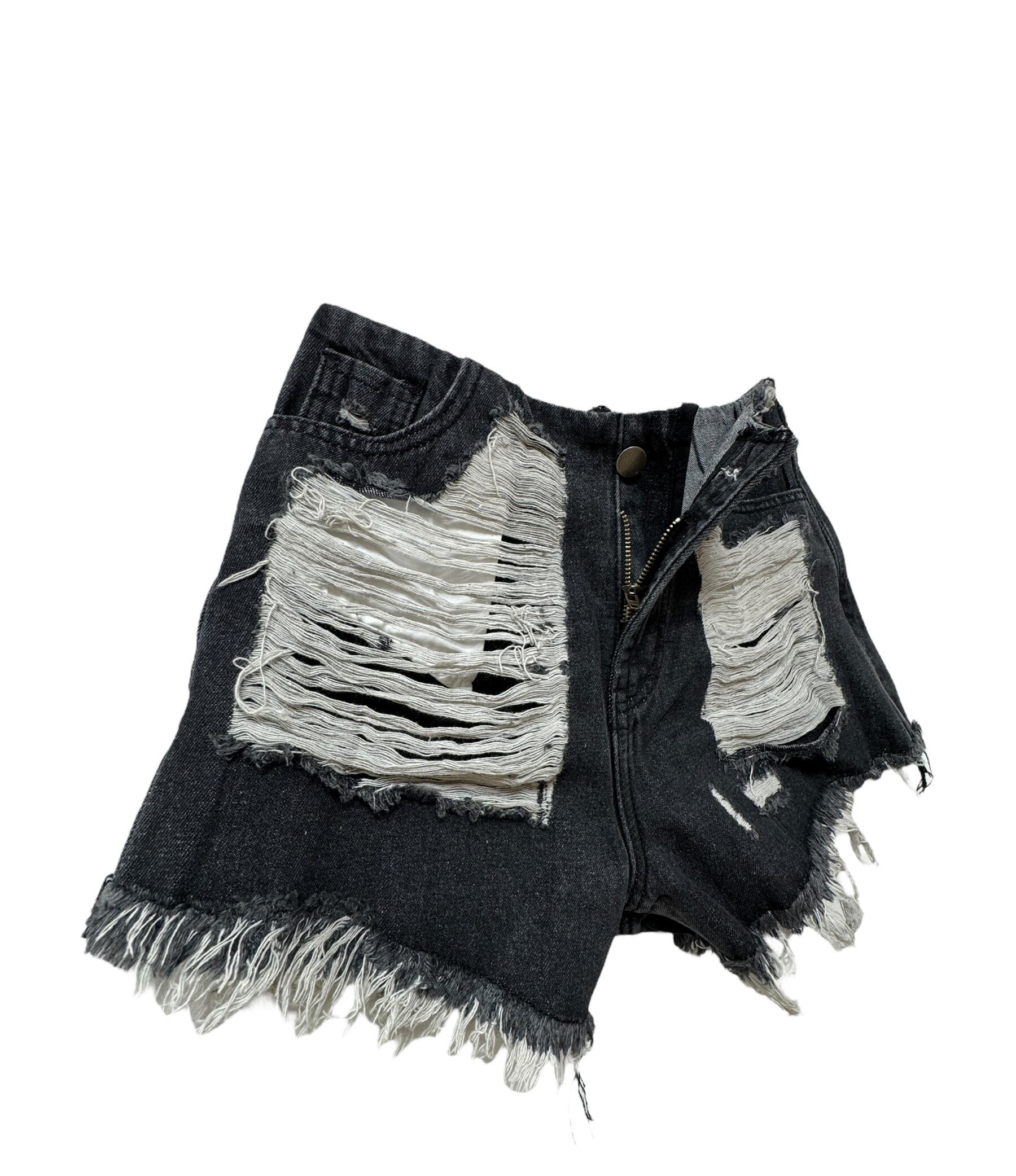 デニムショート ダメージパンツ BK