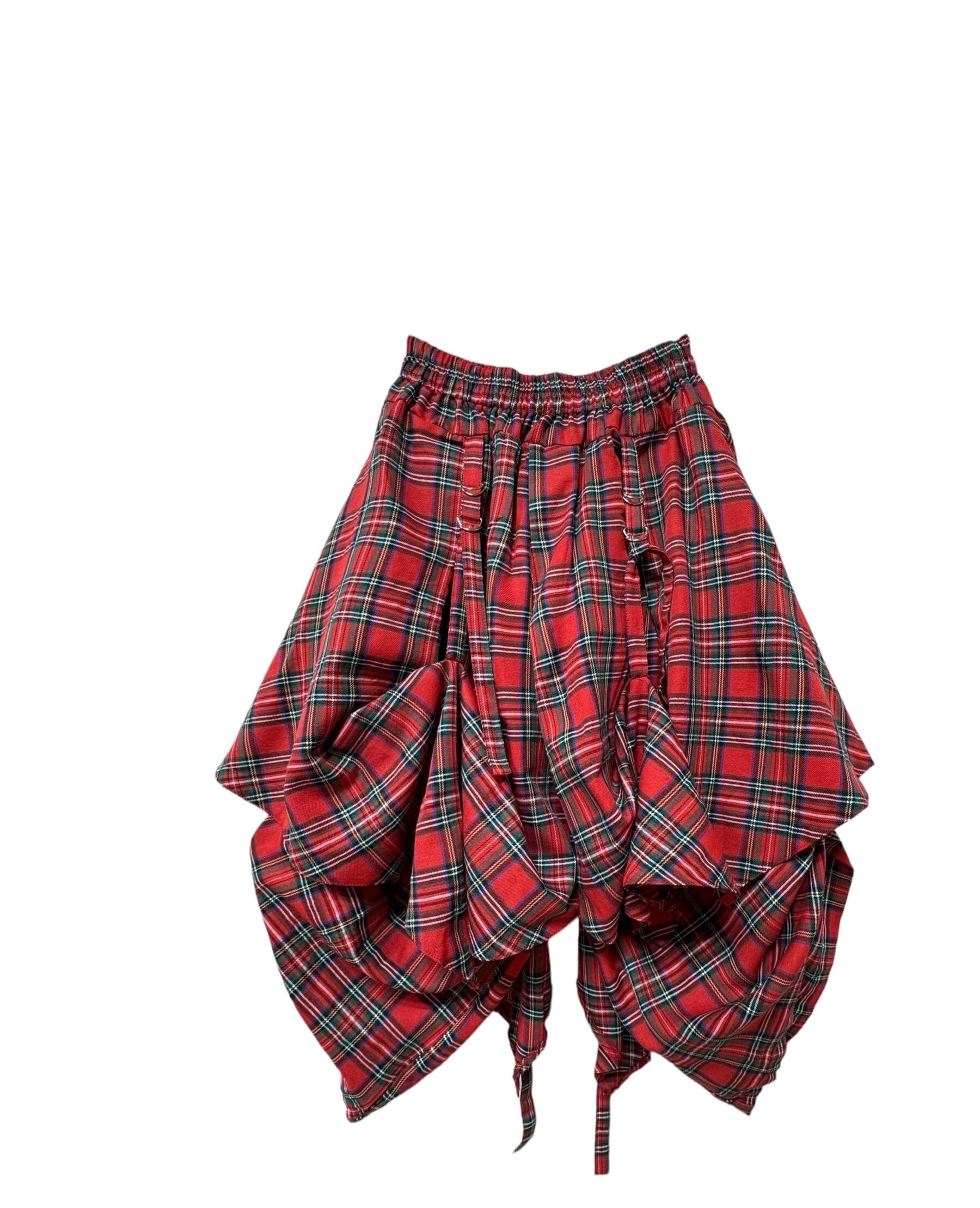ハーフパンツの上に巻きスカートデザイン。