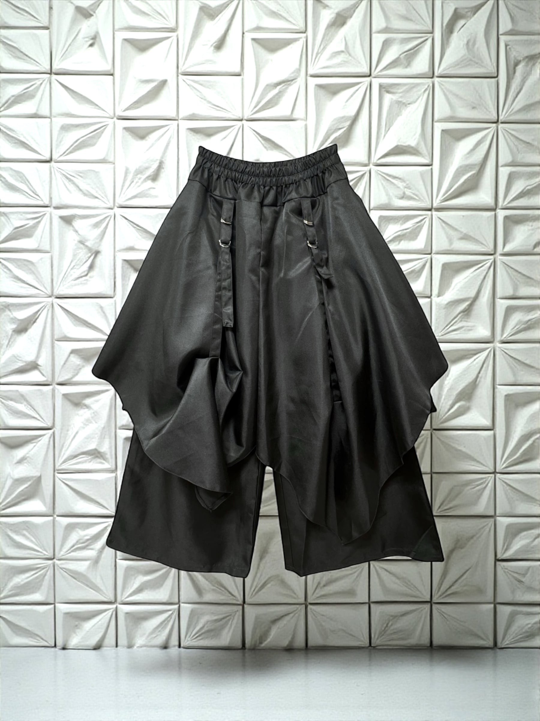 パンツの上に巻きスカートデザイン。
